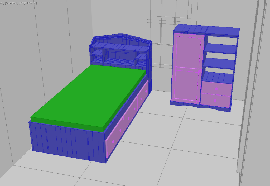 I posed my modular kit into its form for my scene. I also started making the bigger furniture items that will make up some of my scene.
