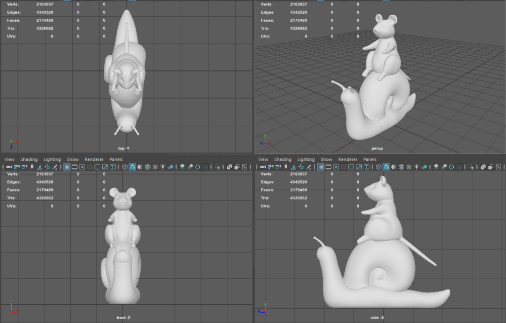 I retopologized everything from scratch by hand and it probably wasn’t necessary, in hindsight. Here is the low-poly model: