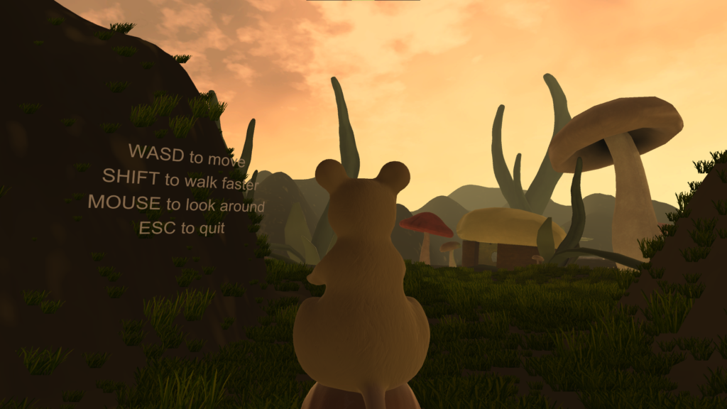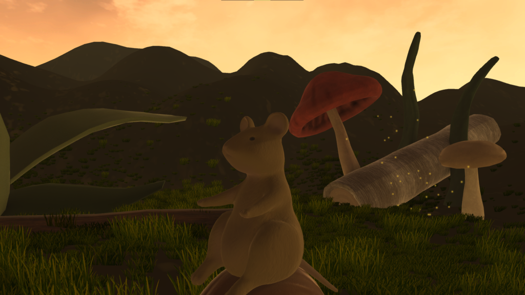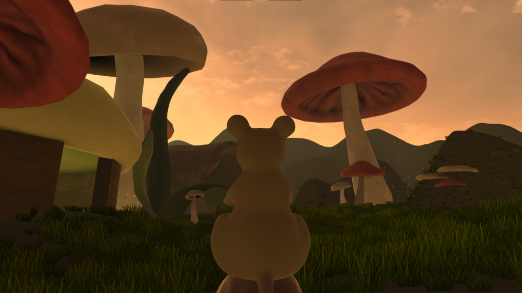 Honestly, the peaceful, calming tone of the music and the environment just gets me in the mood to explore your level. It’s something you can do for hours and feel relaxed for playing a game. Also, great work on the mouse on a snail, hopefully he gets to explore more of the forest in the future!