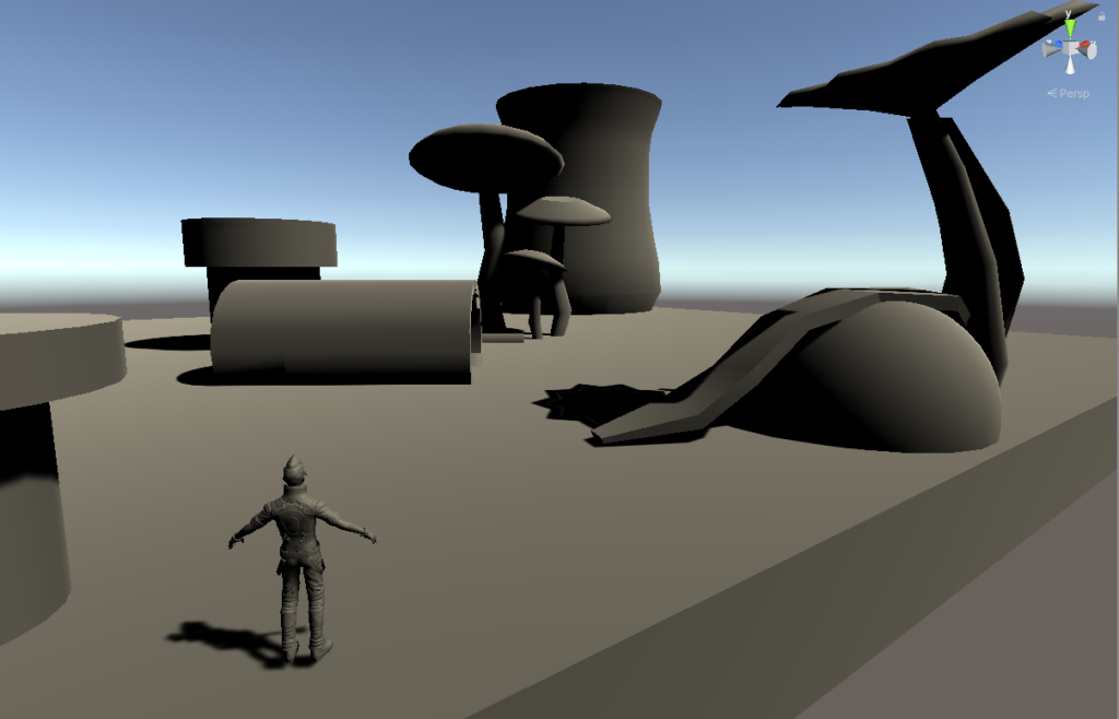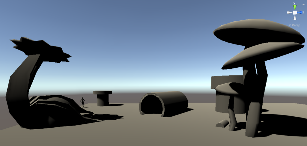 Beyond that is a large lake that the player can only see but not cross. There will be a deck for them to walk on. I had a low poly rippling pond in one of my previous games so I’d like to make a similar water effect.