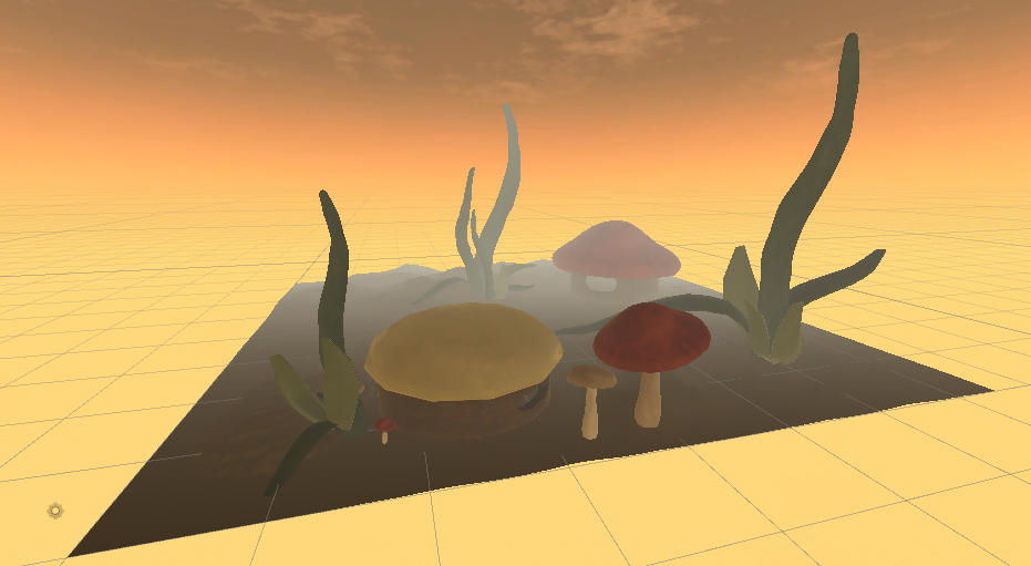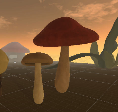 Thanks! I’m glad my objects seem soft and I’d like to give them some more surface depth and detail. I will have 4 types of mushroom tops (a really flat type that sometmes also grows out of tree trunks and a longer ghost-shaped one). There will probably be 30 mushrooms with varying sizes in the scene.