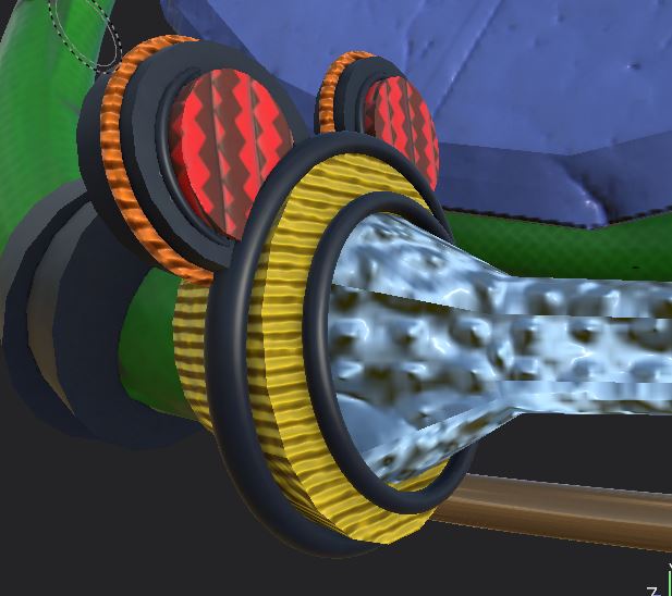 The rugged-ness of the textures gives Sandy that edge. I think it would be cool if Sandy’s eye color changed depending on their mood.