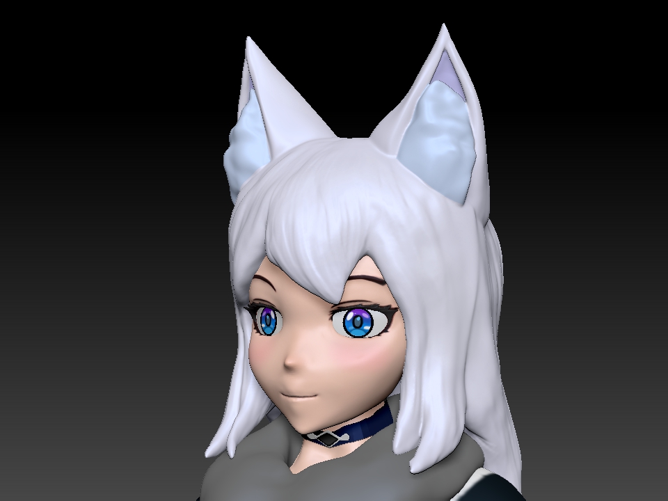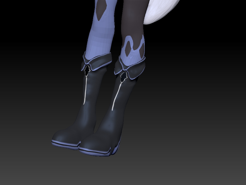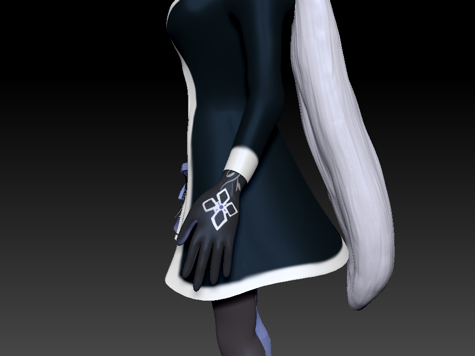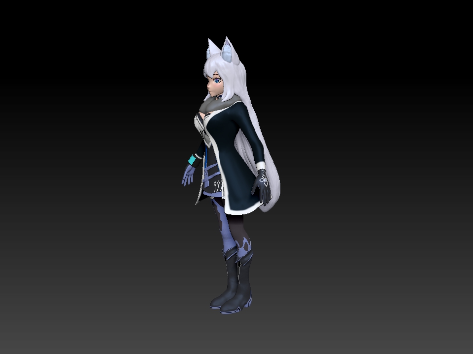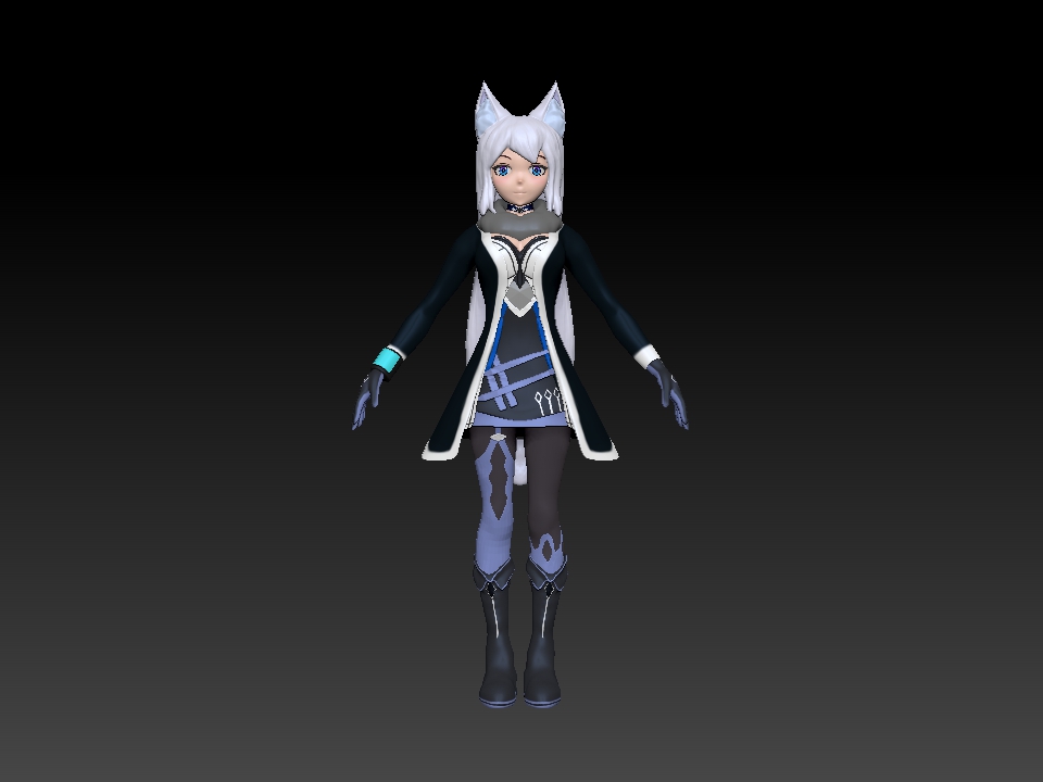 I actually…don’t have any concept sketches besides loosely referring to a couple of actual winter clothing. Texturing was mainly put into a mostly dominant single shaded color. In the styles I wanted to replicate, it was a grand mistake to do it without setting up a cel-shader for Substance. The problem was I wanted to do two toned coloring (that is, create my own hard and soft shadows onto the models which are generally static). This is to achieve the “anime” look, and it will work really well in practice. Unfortunately, this meant also spending more time on Yuki so its not feasible for me to try to learn this ON top of modeling and texturing.
