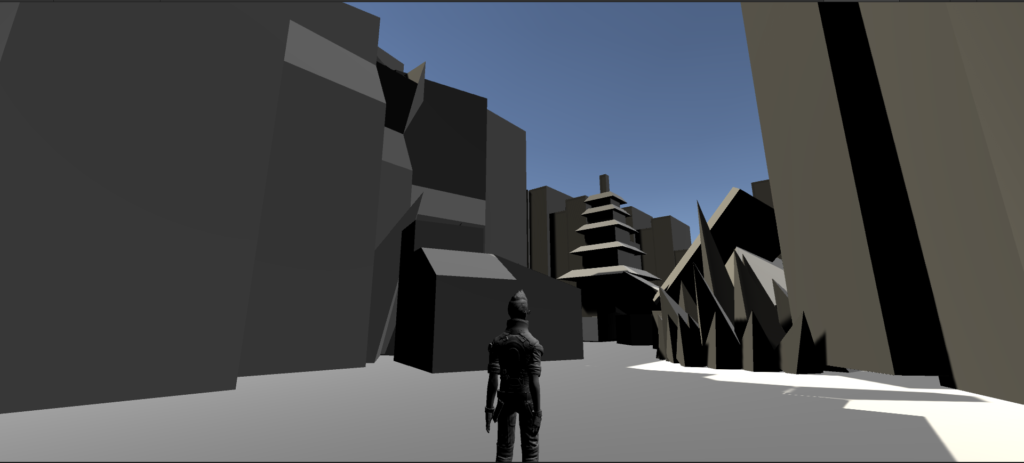 There are only a few unique structures so far so since this “suppose to be basic” (even though I just went a little too hard on this) I want to at least make some of the environment not look like its been copied and pasted (cough all the tall buildings). It’s also really bright to show the level environment; don’t expect that at all when I set up proper mood lighting.