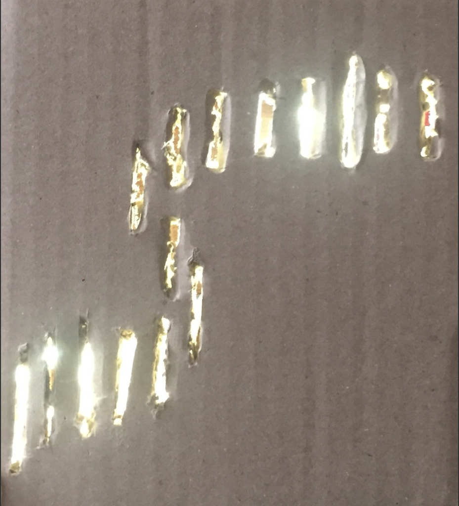 For my project, I decided to go with the aurora borealis painting that utilizes slits in the canvas and LED strips to create the aurora effect. For the maquette, I took a piece of cardboard and cut slits of varying lengths in a vague pattern then set two light sources behind it to simulate the LEDs. The light shone through the slits well. With some much cleaner cuts, the light behind the canvas should be seen very easily. By programming the LED strips to change colors and intensity, it should give the painting the effect of having a live, pulsing aurora.