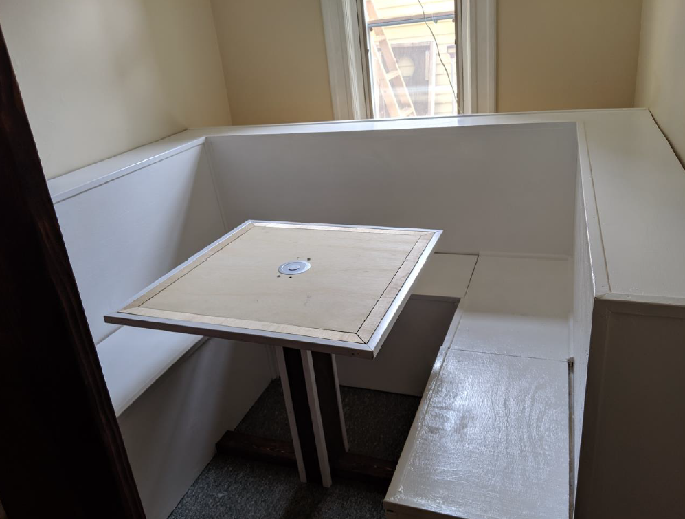 Familiar. As someone who also likes building things, I thought your desire to make the booth for more seating was familiar.