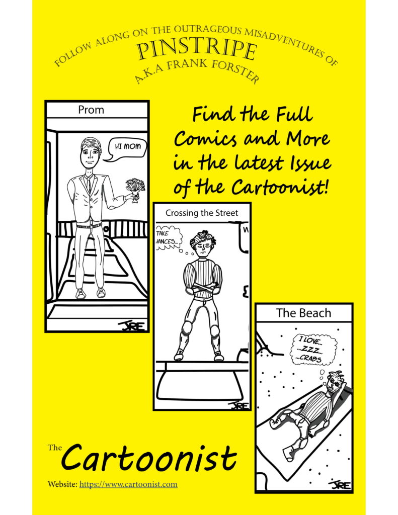 The comic that you drew an ad for – especially the last panel, with his awkward beach-sprawl and the amazing “I love… zzz… crabs”. I’m a sucker for random, unexpected humor like that, and it definitely got me to chuckle. Was the comic actually published in The Cartoonist? That’s very exciting if so and I would love to read the full strips.