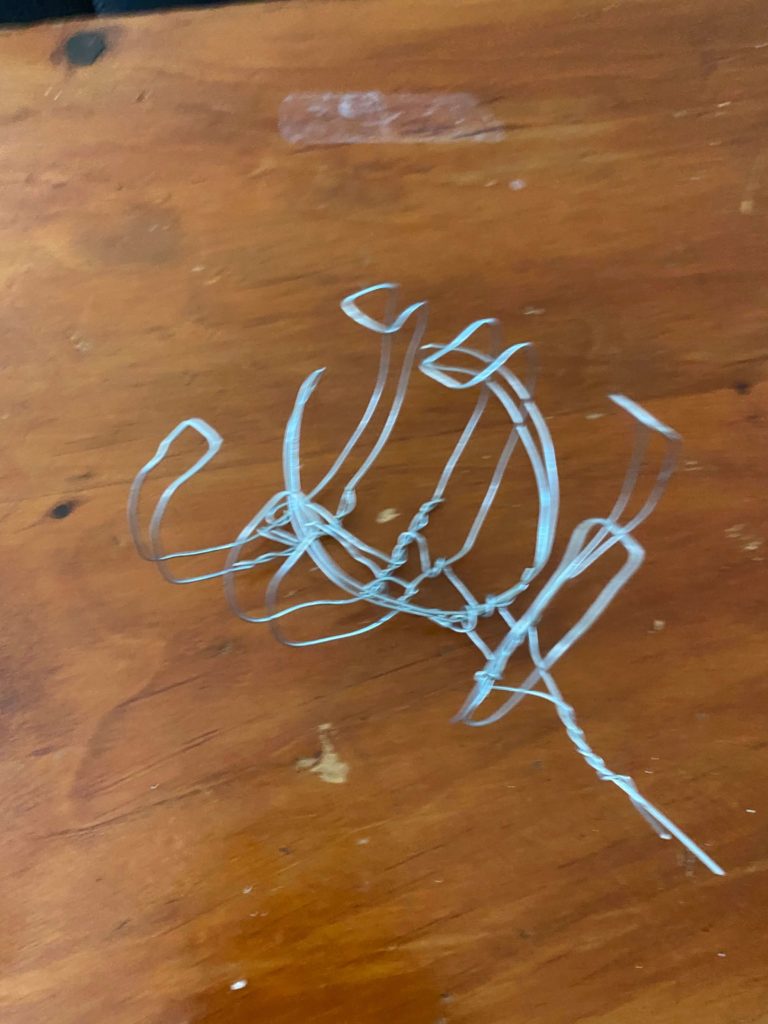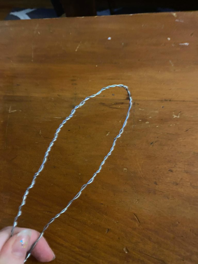 Disheartened, I remembered some advice I had received from my classmates, who had suggested I could twist the wire together to double it up and strengthen it. After doing this, it was clear that the wire was much more resilient and less bendy.