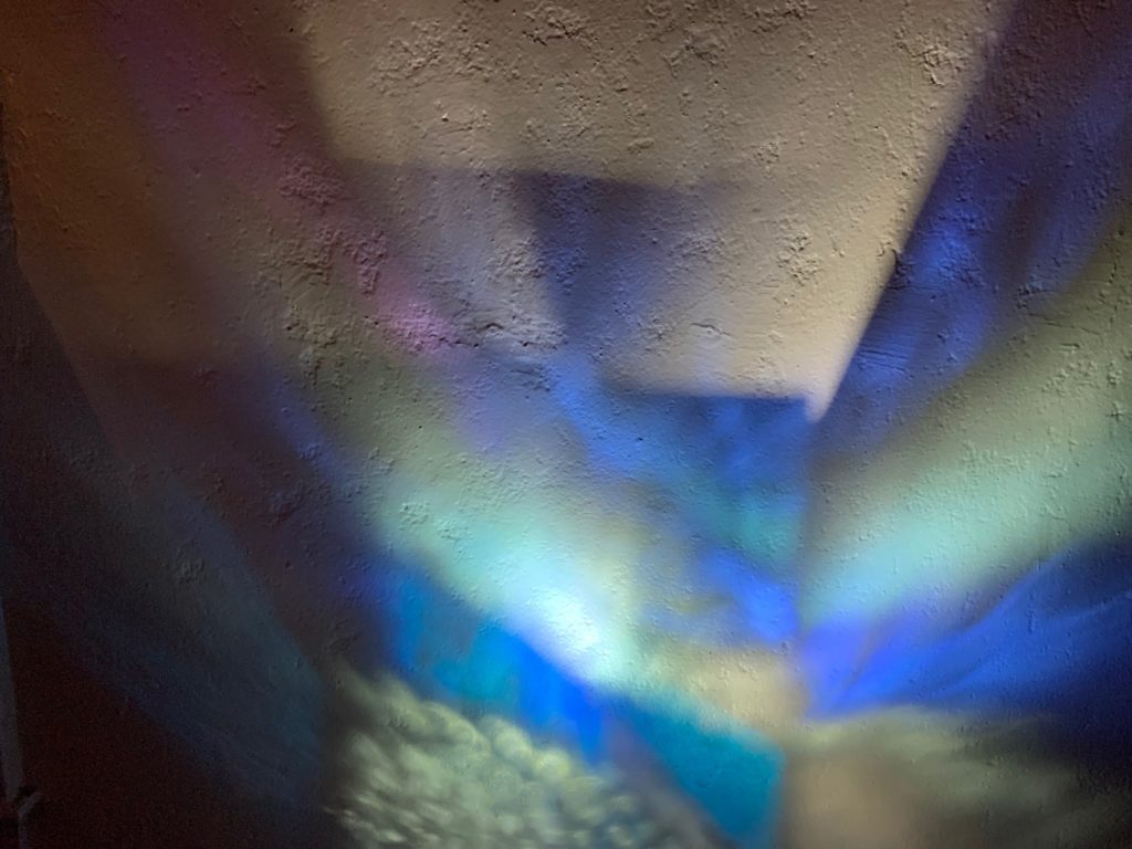 I planned on using a genie lightbulb that connected to my phone so I would change its color and use a setting on it called nature that would create a wave effect because it started bright then faded, then went bright again in a cycle. I wired the light socket, wrapped the lamp wire in twine, and plugged it in only to find out that the light wasn’t bright or concentrated enough to show the shadow patterns of the sheet that my phone flashlight was. I bought two small LED spotlights and wired them to the same lamp socket, and when I plugged them in, they worked like magic. I am extremely proud of my end result, I really pushed myself to learn new things this term, and to rethink my project many times to get the end goal from inside of my head to right in front of my eyes.